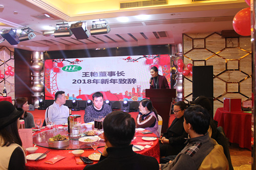 2018禾益心-靜心致遠-聚溪成海,禾益凈化董事長發表新年賀詞,致辭結束后禾益董事成員開香檳慶祝2017年的豐碩成果,拉開了禾益年會的序幕。