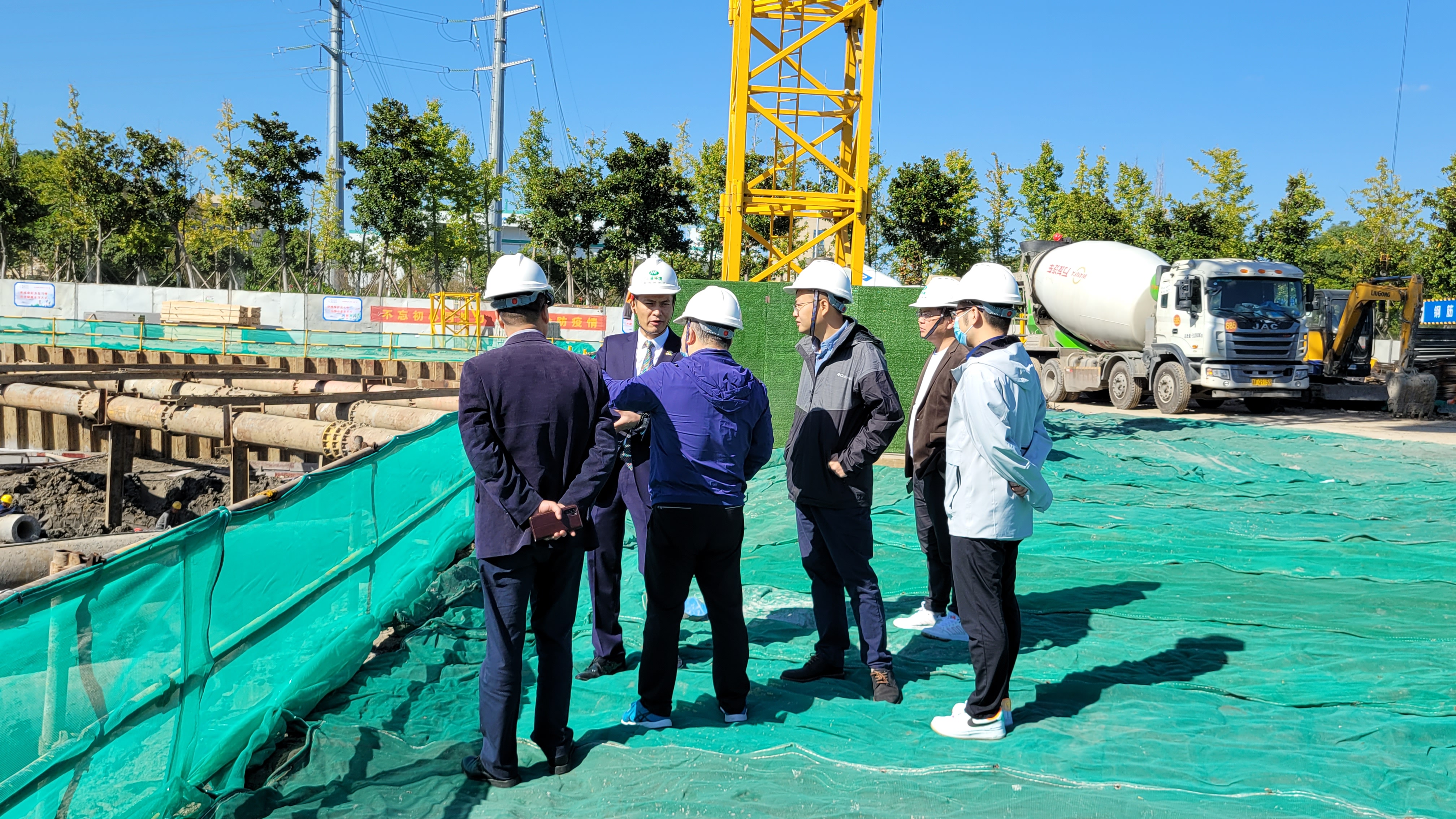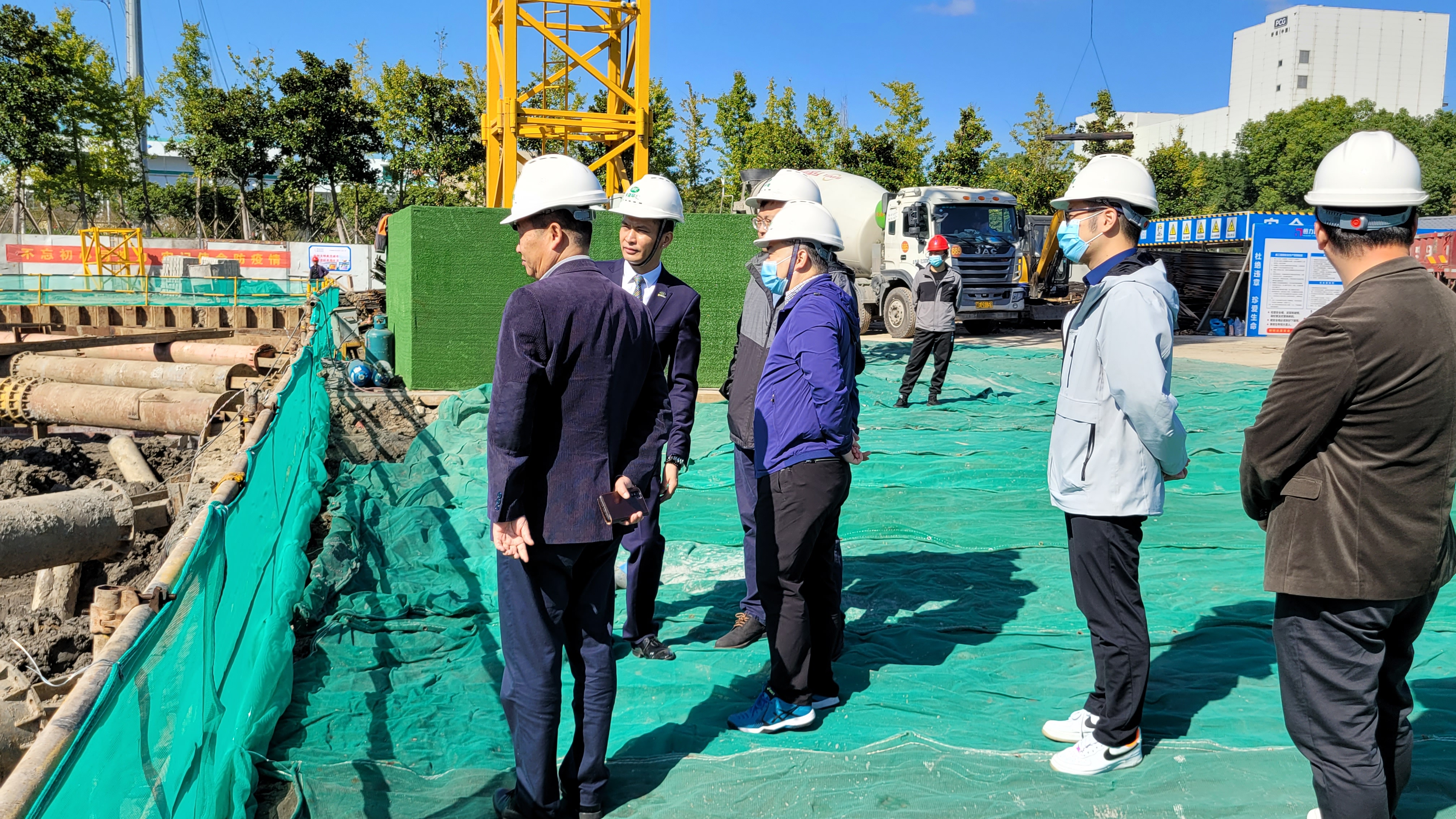 胡泓恬一行近距離察看項目主體結構,著重了解了施工進度、內部設施、后續運營等方面情況,對項目推進力度表示肯定,對施工現場安全管理和防疫工作進行了指導,希望禾益環境把好工地、項目建設的各類細節,加強各類人員管控,切實做好核酸檢測、人員轉運、環境消殺等工作。